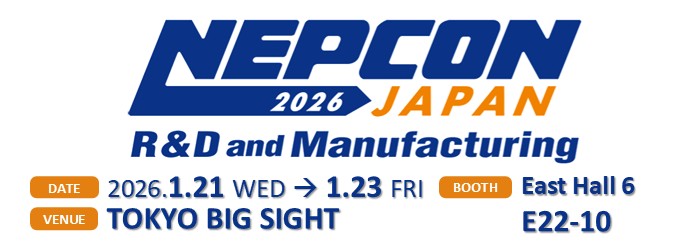 展示会名:Nepcon Japan 2026 期間:2026年1月21日(水)~23日(金) 場所:東京ビッグサイト ブース:East Hall 6・E22-10